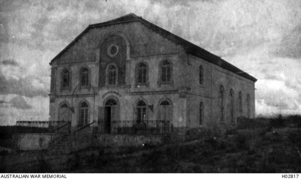 Australian War Memorial Collection: “Palestine. c. 1918. A Jewish Synagogue at Ras Deiran near Jaffa. (Donor T. Fahey)”. Copyright expired, public domain.