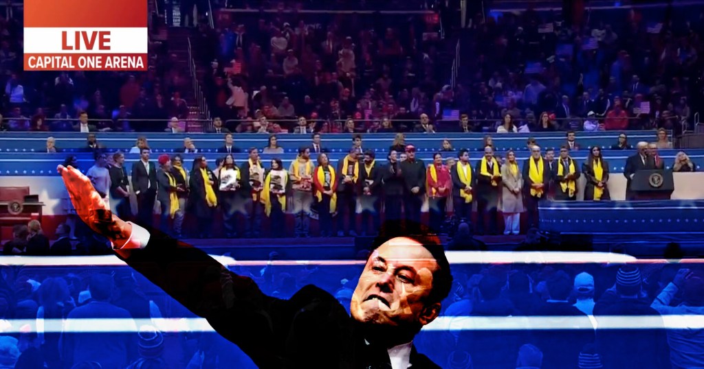 And then as I write, tonight Elon Musk took the Trump inaugural celebration stage at the Capital One Arena in Washington DC, and gave a Hitler-style salute: No, that had to be a Roman salute of course, thump to chest, arm held high, Giorgia Meloni in his dreams.