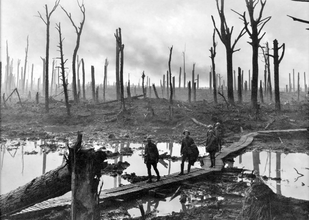 Picture credit: Soldiers of the 10th Field Artillery, Australian 4th Division, at Chateau Wood, Ypres, 31 October 1917. From front to rear: Gunner James Fulton, Lt Anthony Devine, 3rd soldier unknown. Australian War Memorial, item E01220. Public domain. Lest we forget.